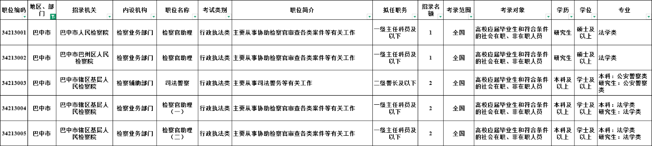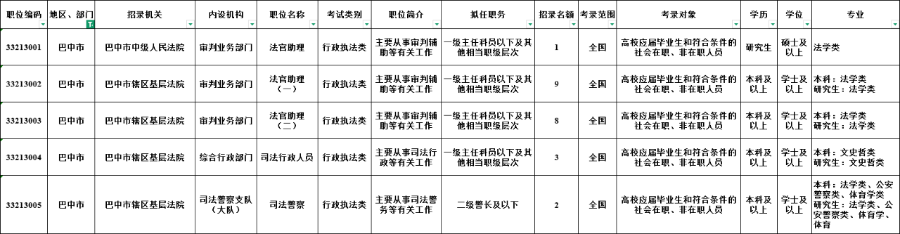 1.四川省法院系统计划招录634名(巴中23名),全省检察院系统计划招录439名(巴中8名);