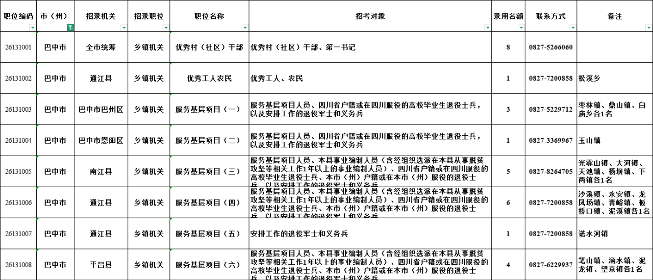 1.巴中招录29名