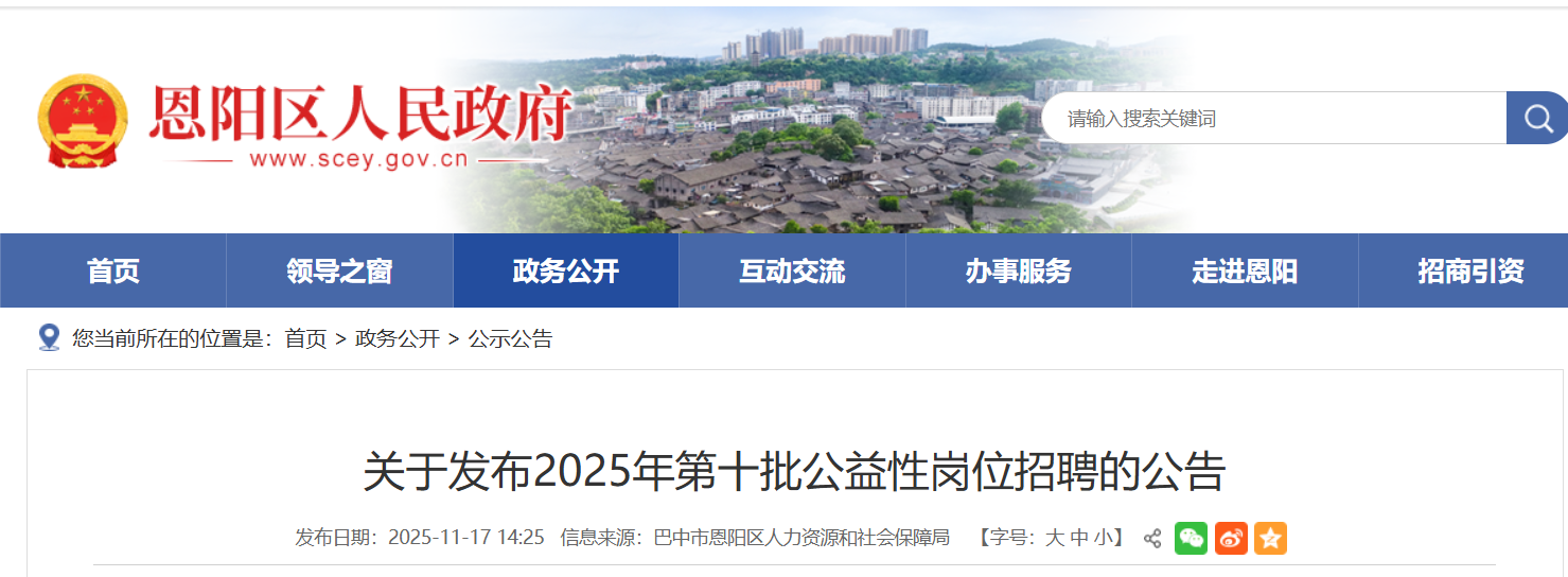 附件:附件:巴中市恩阳区2025年第十批公益性岗位招聘信息表.xlsx