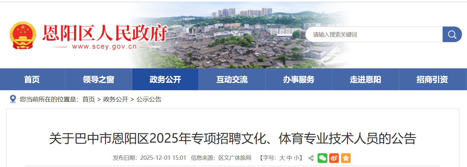 4.本公告由巴中市恩阳区人力资源和社会保障局、巴中市恩阳区文化广播电视体育和旅游局负责解释(电话:0827-3368677)