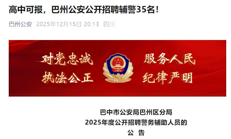 巴中市公安局巴州区分局2025年度公开招聘警务辅助人员的公告