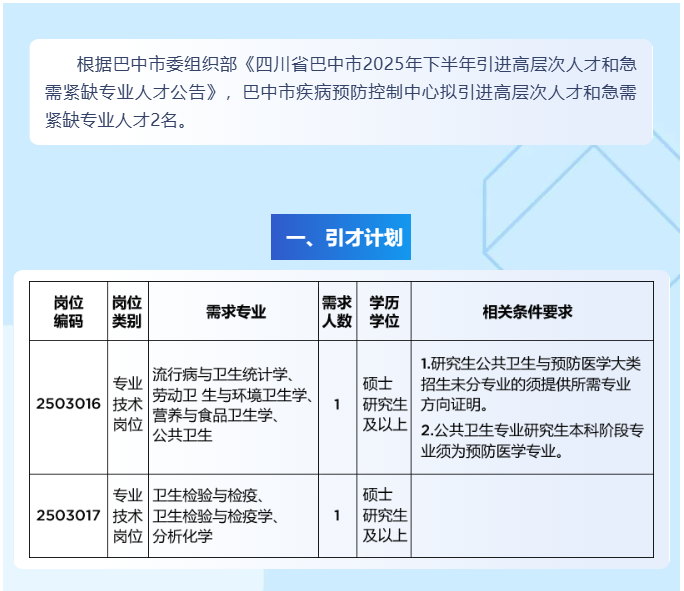 解决编制+安家补助,巴中市疾病预防控制中心人才引进公告!